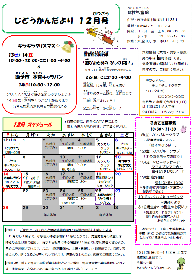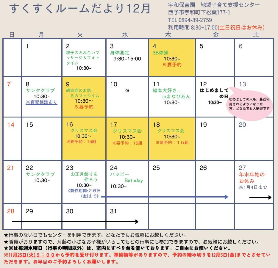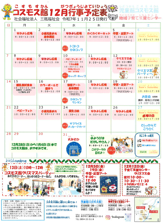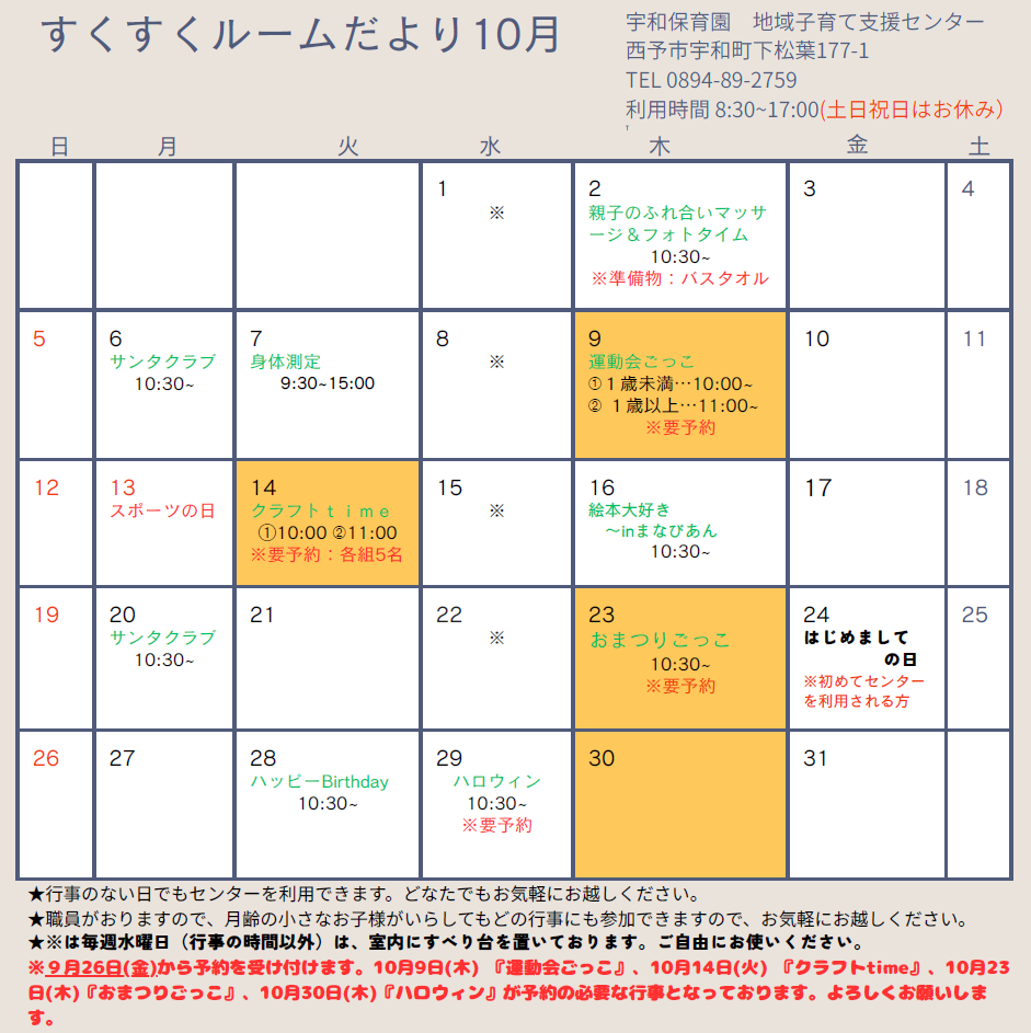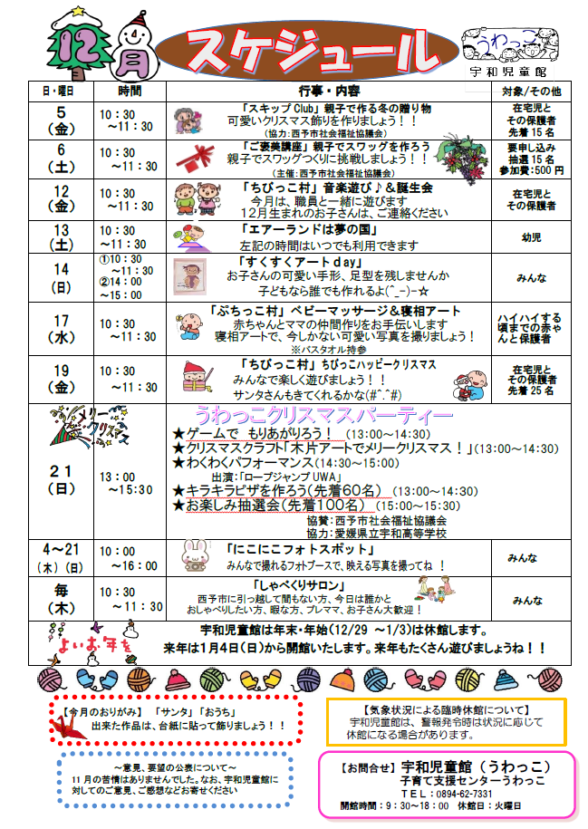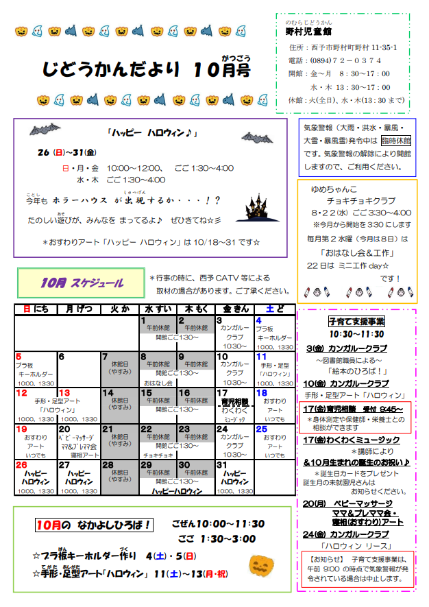 西予市内の子育て支援センター・児童館では、毎月いろいろなイベントを用意していただいておりますので、ぜひご利用ください。