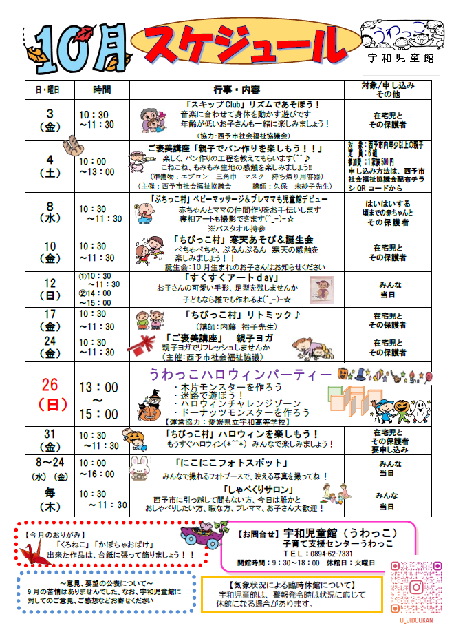 宇和児童館のページは こちら より確認できます。