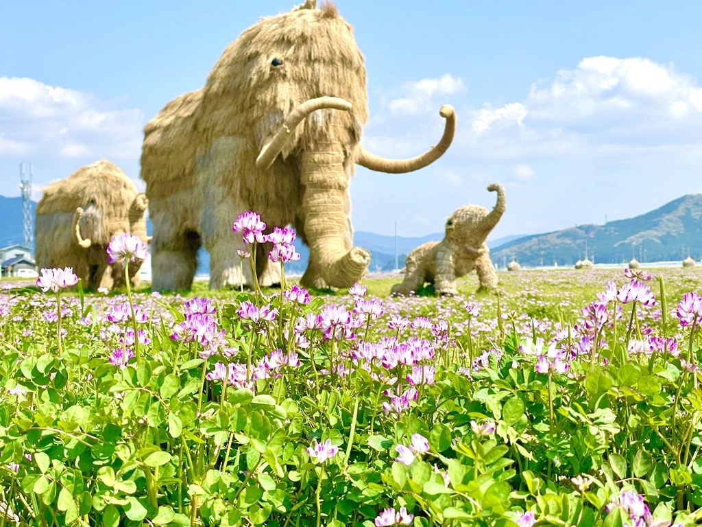 わらマンモスがそびえるれんげ田園を会場に、宇和れんげまつりを開催します。