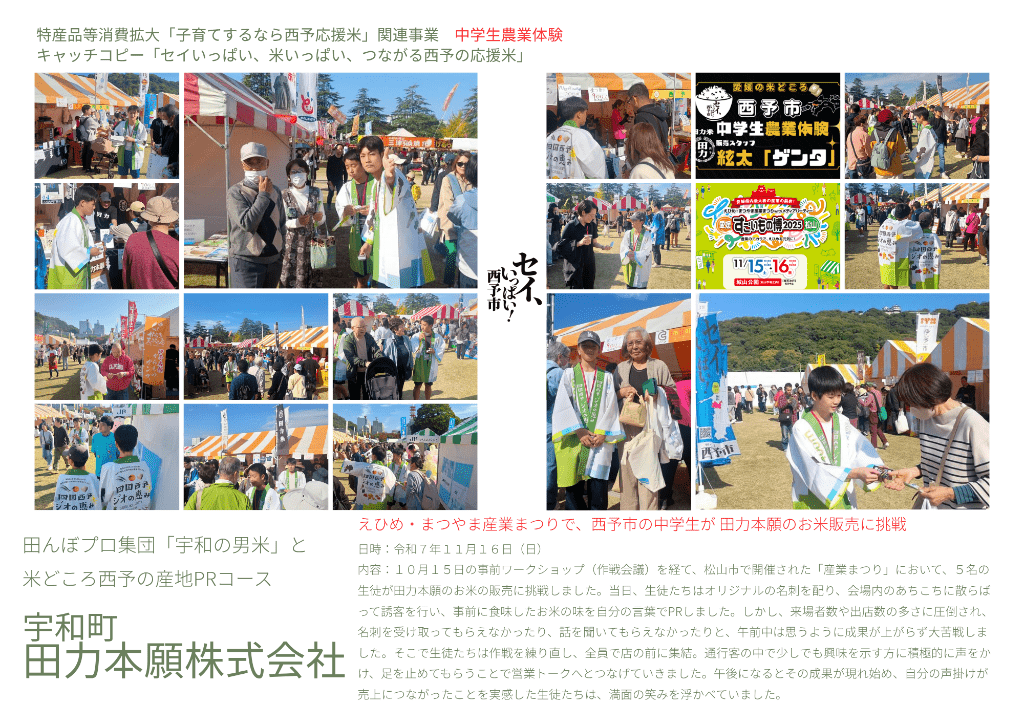令和7年11月16日(日曜日)開催 米どころ西予市の産地PR