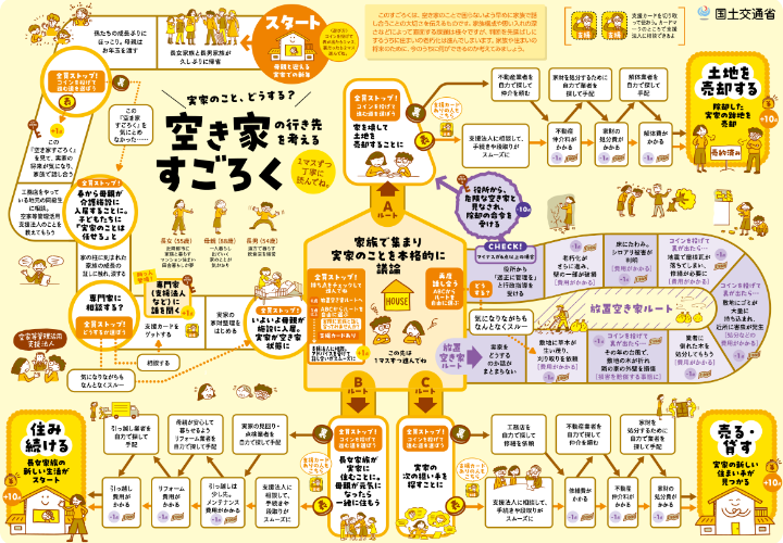 また、国土交通省では、「空き家すごろく」を作成・公表して、ご家族、ご親族で話し合いのきっかけづくりに提案されています。